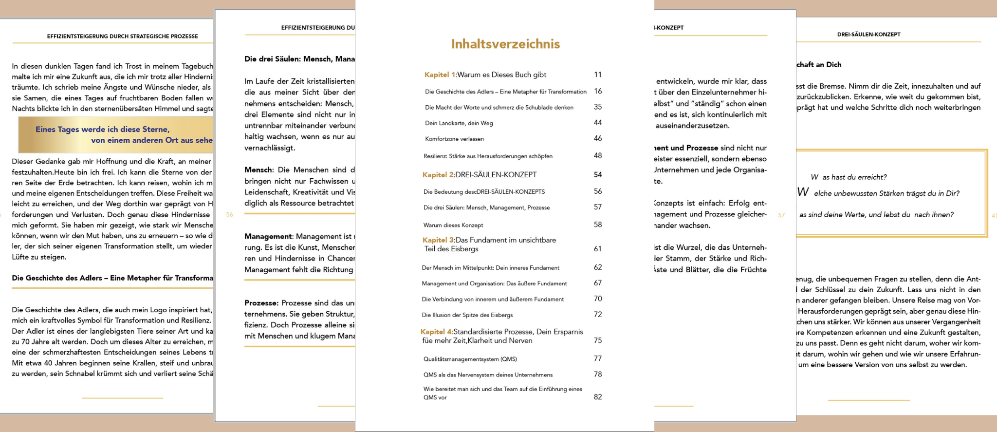 ✔ Die Drei-Säulen-Philosophie in ihrem Unternehmen verankern und als Erfolgsstrategie einsetzen möchten.